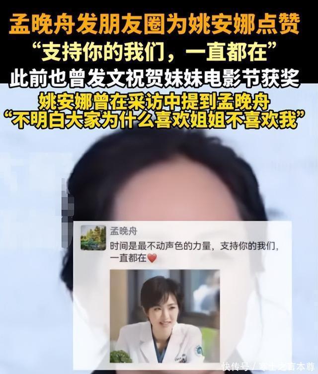 姚安娜凭借短片获奖时,孟晚舟在朋友圈发文为她骄傲。 姚安娜因拍戏被吐槽时,孟晚舟会私下鼓励她坚持自己的选择,不要被外界声音影响。 这份默默的支持,给了姚安娜很多力量。 然而,让孟晚舟也没想到的是,如今《老舅》的播出竟让姚安娜口碑暴涨......